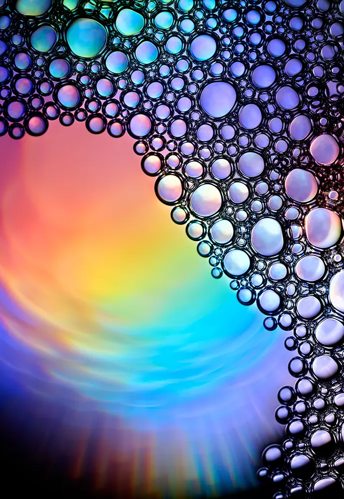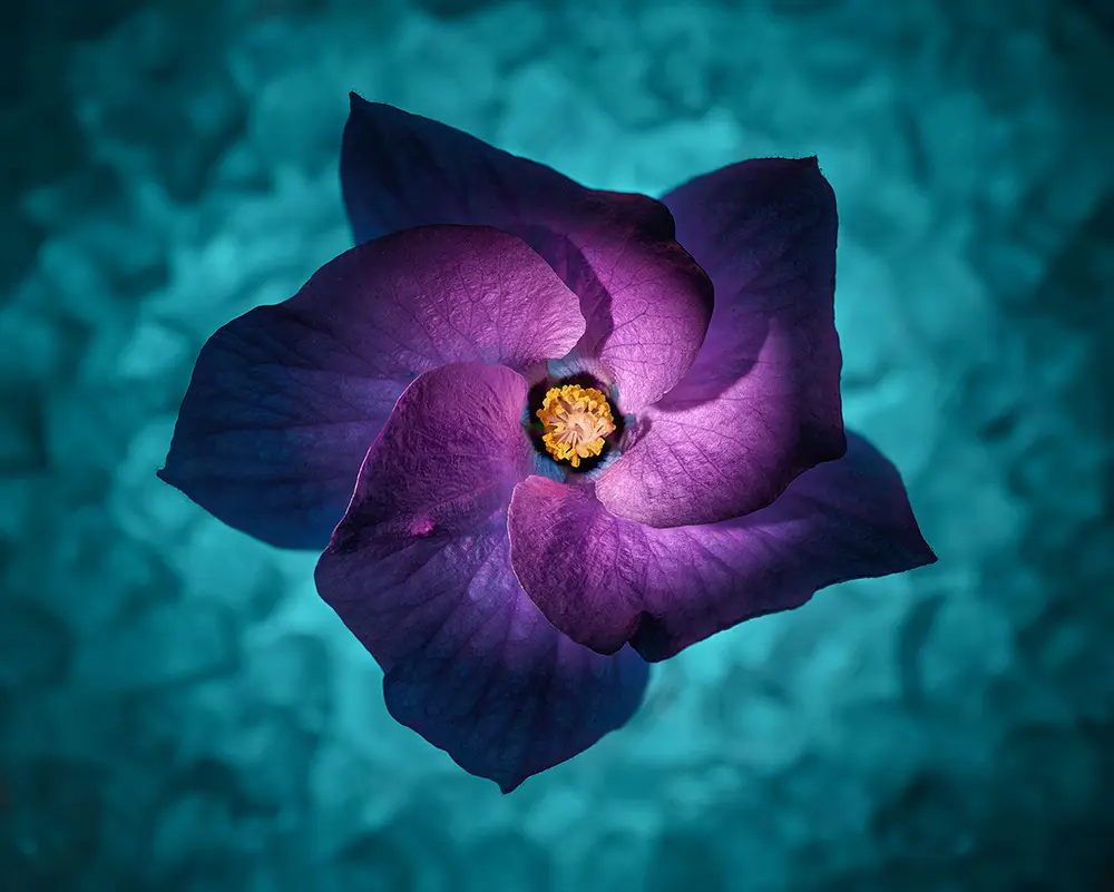 But it’s the rich potential within macro photography that has always been a deep fascination. Using his cameras and lenses to magnify and explore, he experiments with unusual subjects, a variety of liquids, exotic flowers, and then shapes what he discovers with careful illumination. His macro studio is dedicated to exploring new possibilities.